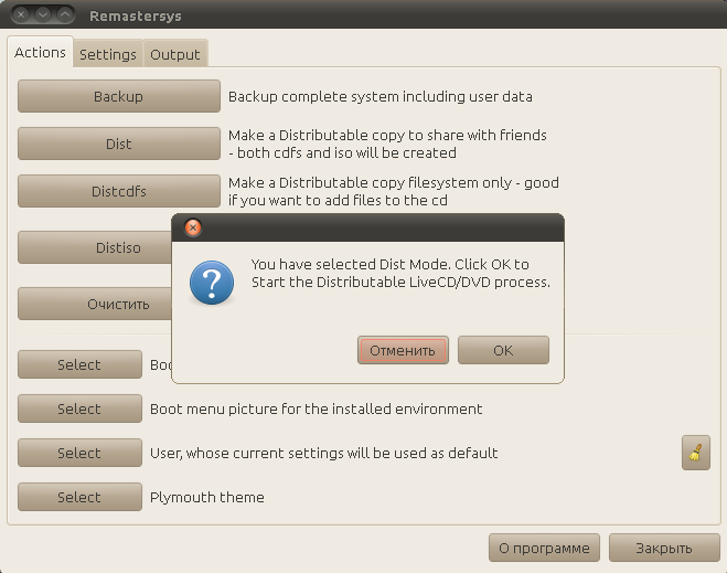 Теперь все приготовления закончены. Запускаем Remastersys:
